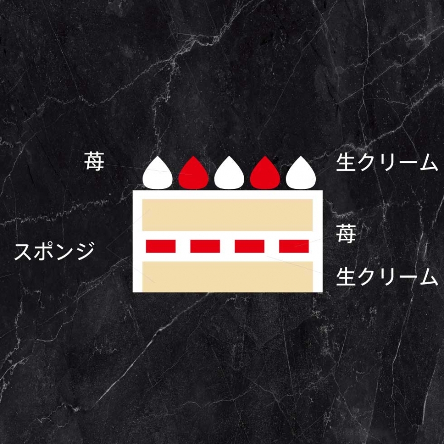 ふんわりスポンジにバニラ香る生クリームと旬の苺をサンドした定番ケーキです。