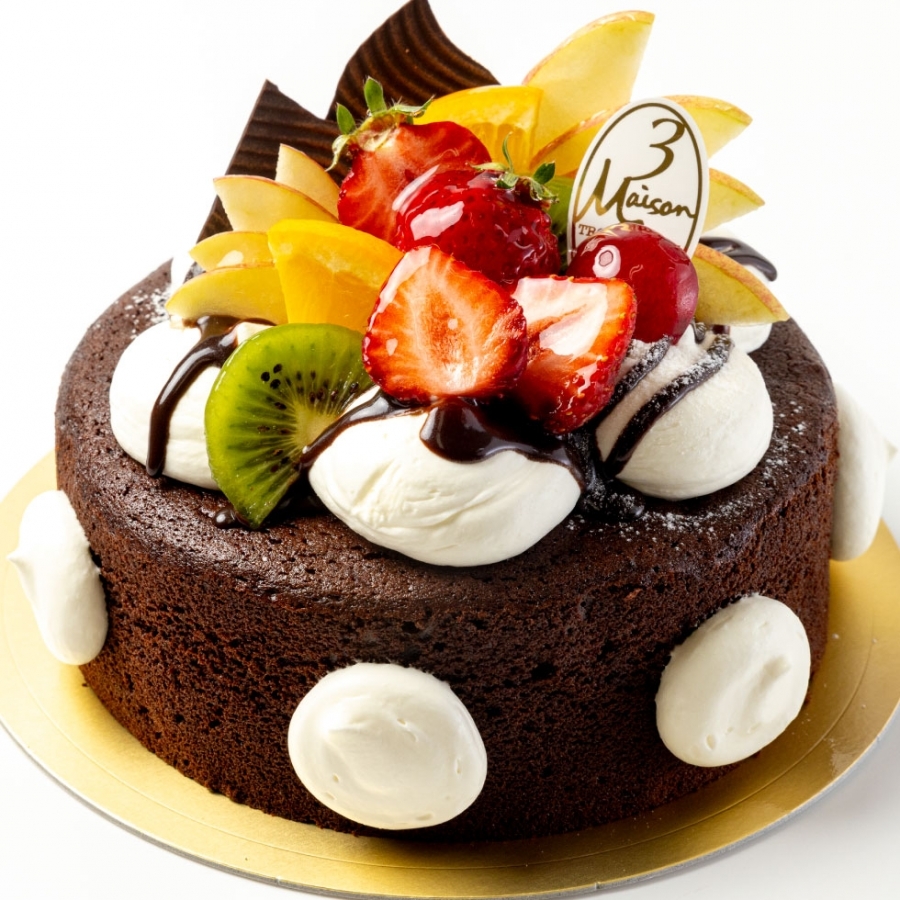 チョコレートの香り豊かな生地に生クリームと季節のフルーツで飾りました。