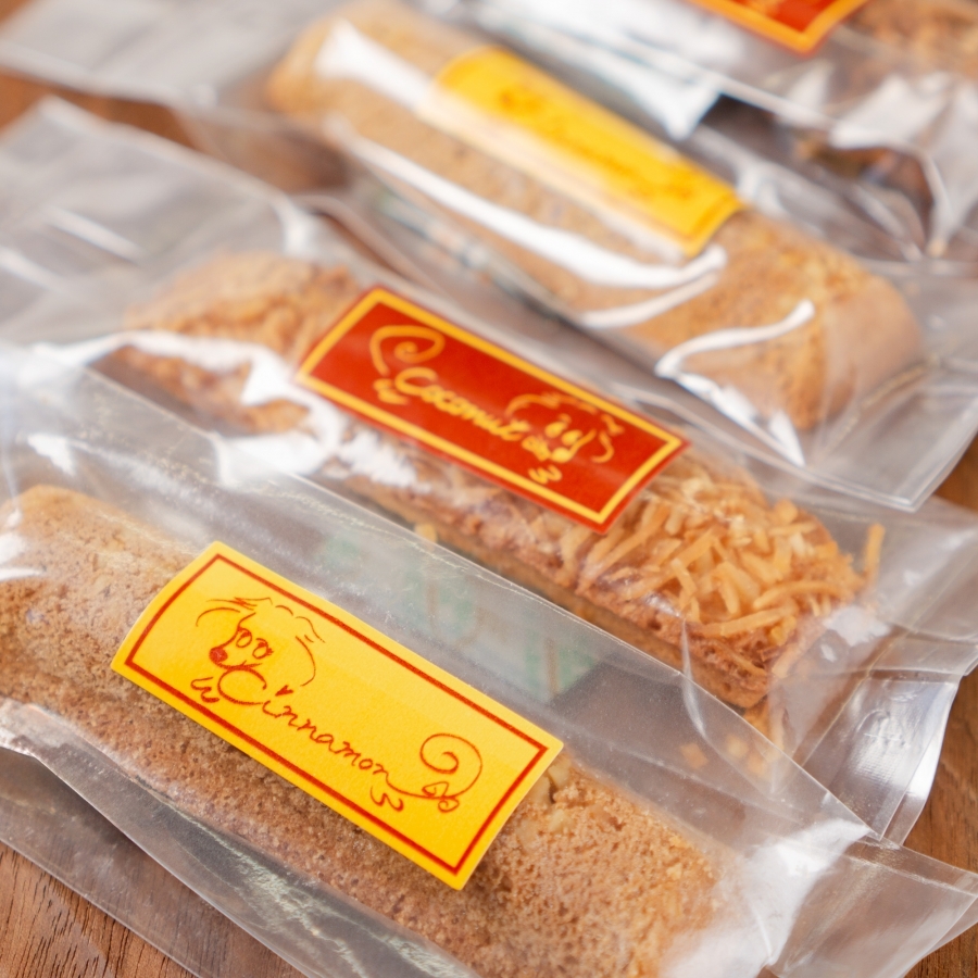 シナモン風味とココナツ風味の二種類のダックスの様な縦長のフィ