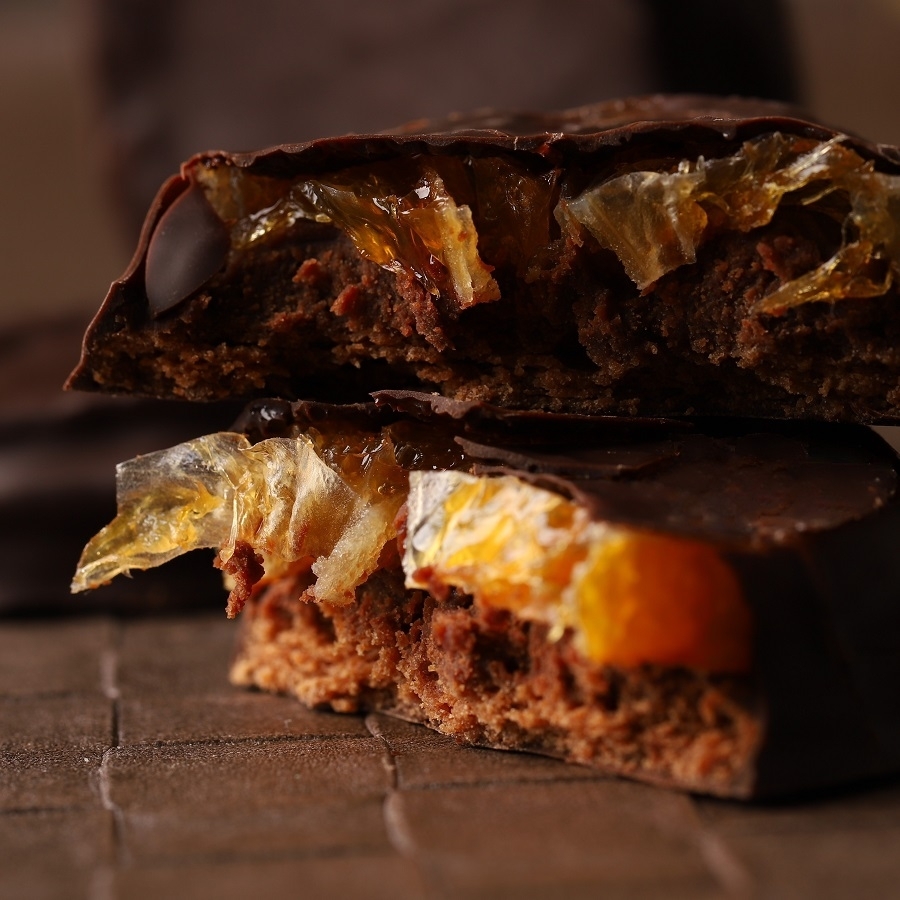 芳醇なエクアドル産カカオに、オレンジの皮とグランマルニエで香りづけしたガナッシュショコラ。