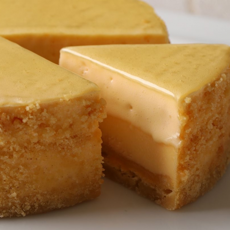 ベイクドチーズケーキとレアチーズケーキが二層になった、アカシエオリジナルのチーズケーキ。カモミールの香りがアクセントです。