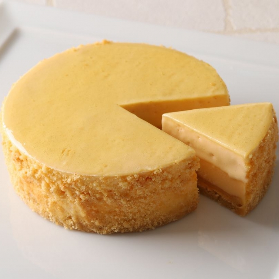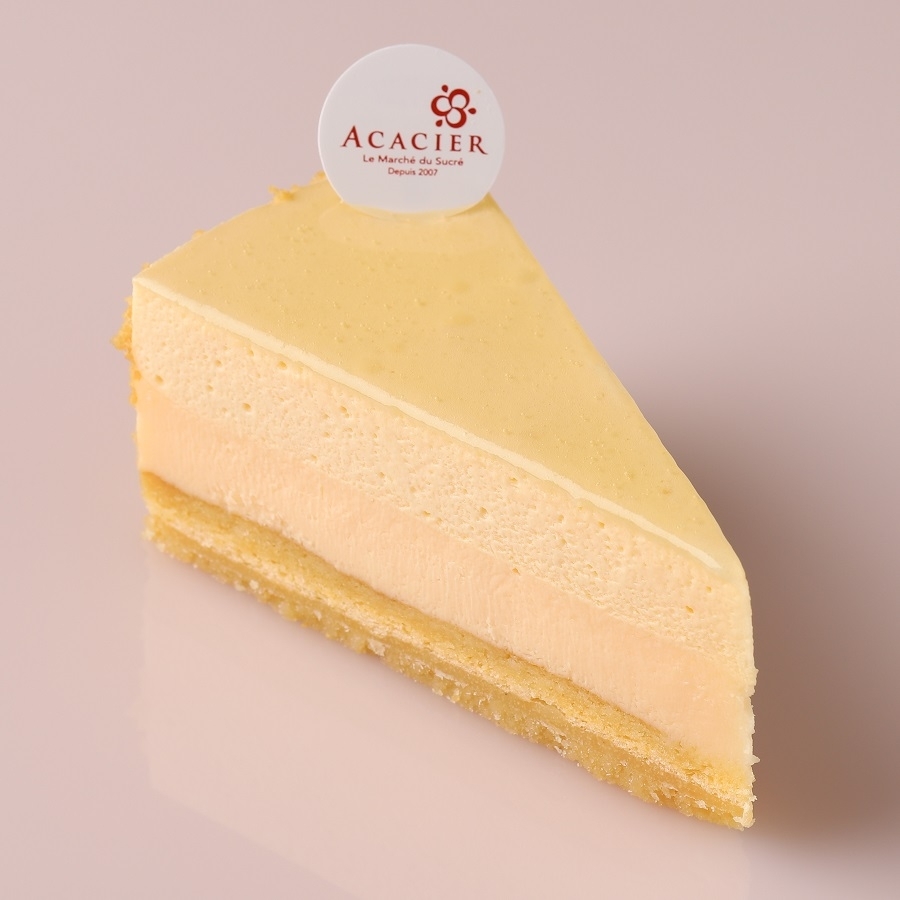 ベイクドチーズケーキとレアチーズケーキが二層になった、アカシエオリジナルのチーズケーキ。カモミールの香りがアクセントです。