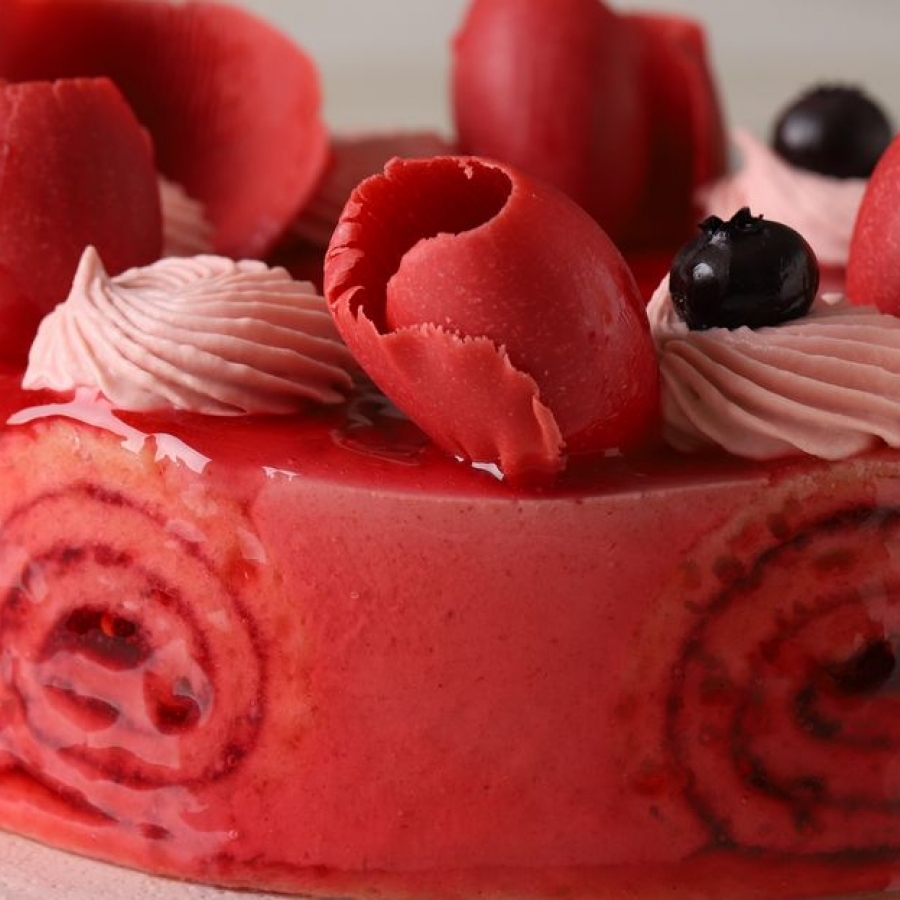回転するルーレット台から名付けられたフランスの古典菓子・カジノを、3種の赤いベリーのムースと、マール・ド・シャンパーニュのバヴァロワの組み合わせで再現しました。
