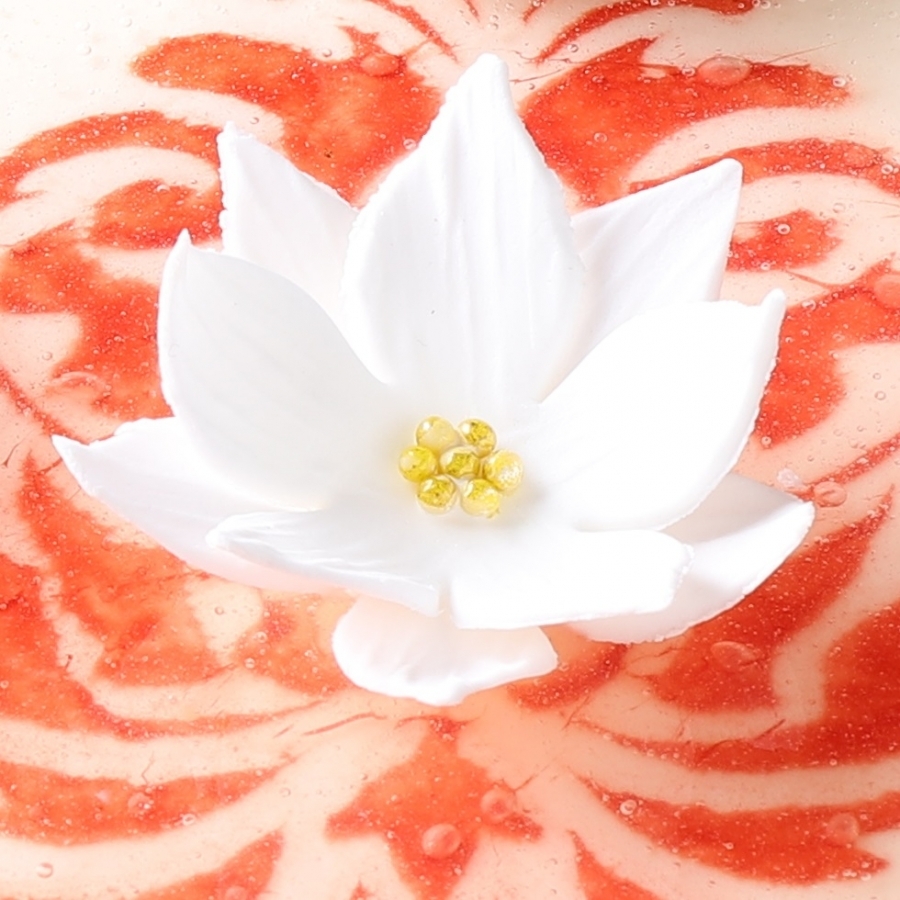 楊貴妃が愛したと言われるライチのムースに、甘く華やかなジャスミンの香り。ほろ苦いグレープフルーツと甘酸っぱいザクロが、香りの余韻を一層引き立てます。心に残る異国のきらめきをもう一度。