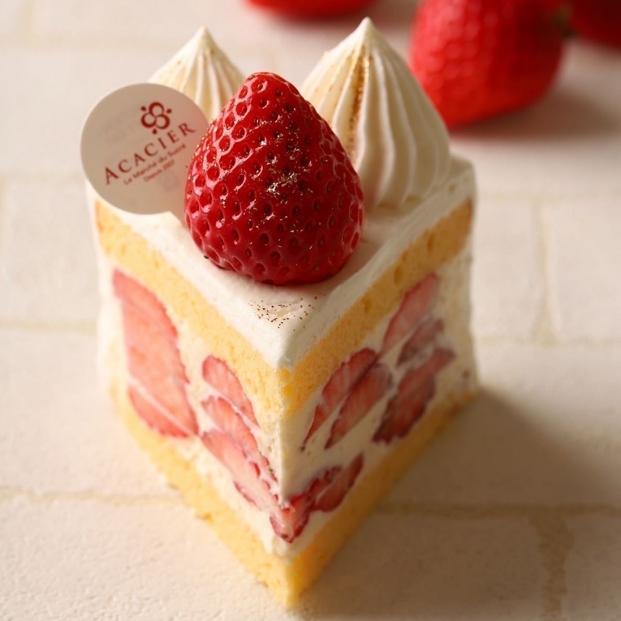 埼玉県でのみ栽培されているプレミアム苺「あまりん」を贅沢に使ったショートケーキ。