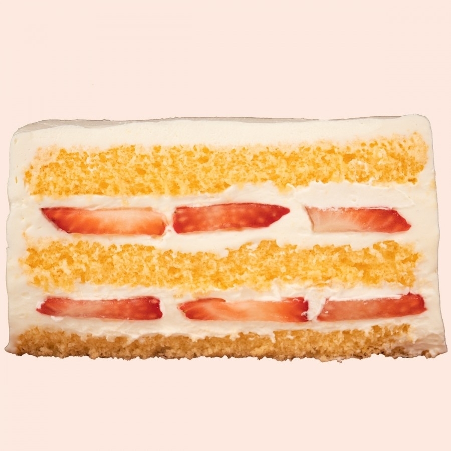 生クリームとスポンジとのバランスを考え、苺は贅沢に2段サンドしています。
