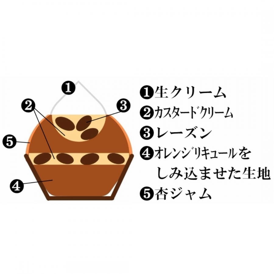 このリキュールを使用したシロップをサバラン生地にたっぷり染み込ませ、レーズンとカスタードクリームを忍ばせました。