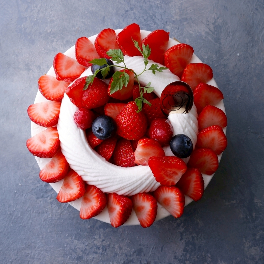 真っ赤に艶めくベリーとのコントラストが美しい