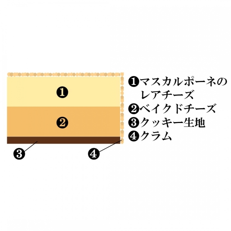 マスカルポーネの優しいなめらかなレアチーズと、濃厚なベイクドチーズケーキの2層のケーキ。