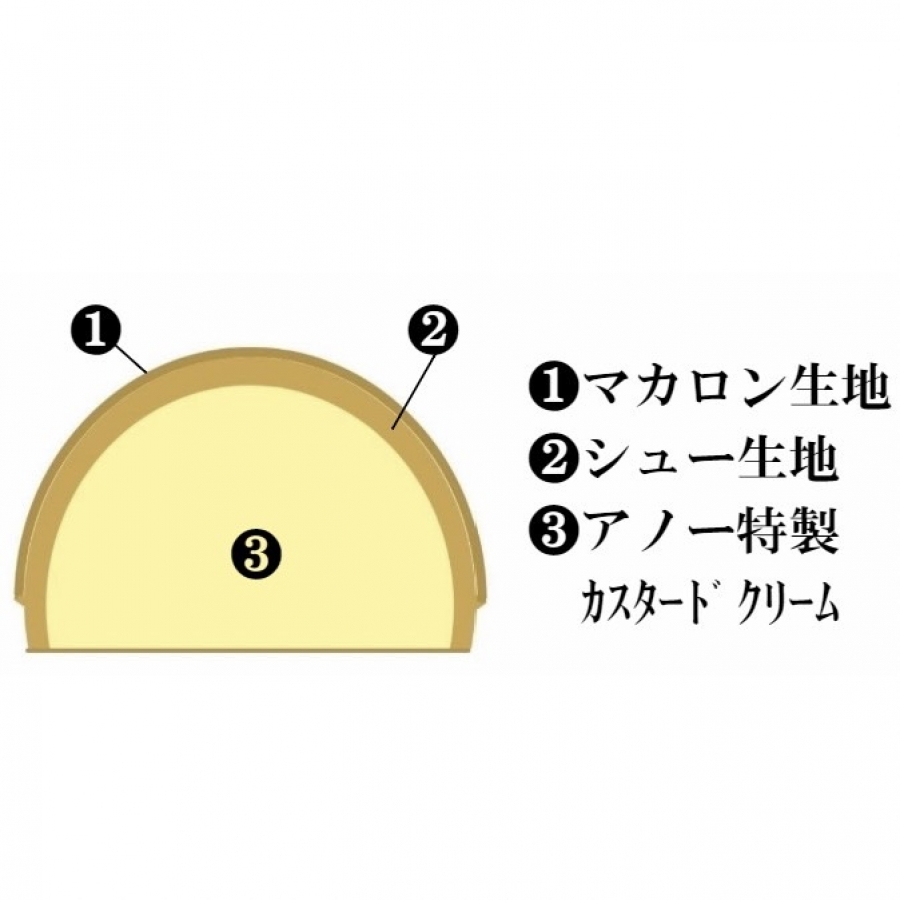 マカロン生地を上にのせ焼き上げたアノー特製のシュー生地にたっぷりのカスタードを詰めました!