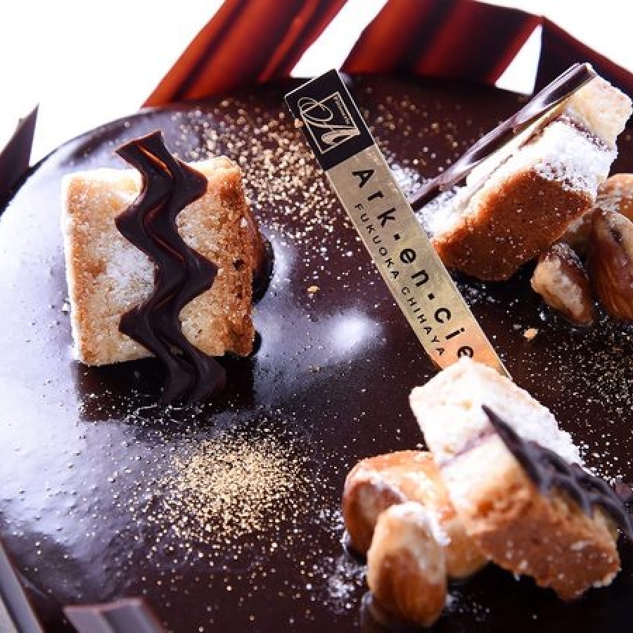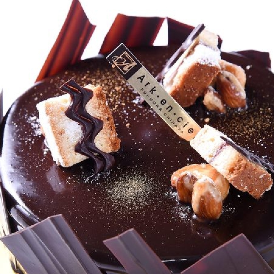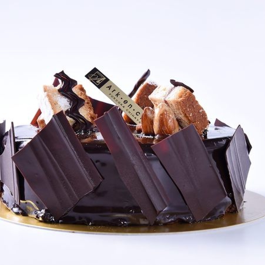 スイートチョコレートをたっぷり使った生クリームとチョコスポンジを交互にサンドしたチョコレートケーキです。スポンジの間はにマカダミアナッツをサンドしています。表面には艶々のコーティングをかけた、チョコ好きにはたまらない商品です。