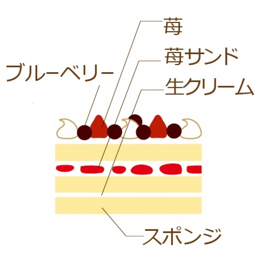 スポンジケーキの間に苺をサンドした人気の生クリームケーキの上に、ふんだんに苺とブルーベリーをのせました