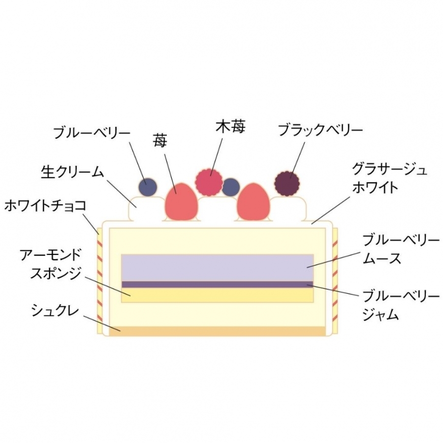 フランス産クリームチーズを使用したなめらかな口当たりが特徴のレアチーズケーキとブルーベリーの爽やかなムースを組み合わせたアントルメ。