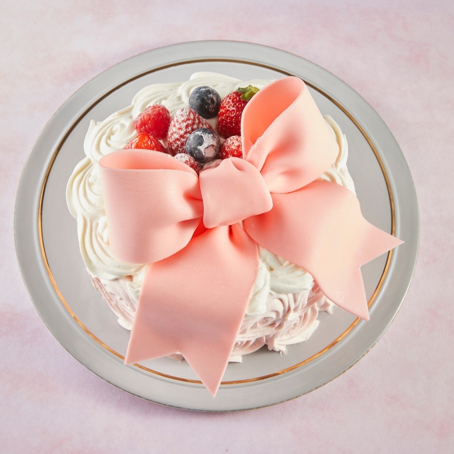 リボンの後ろにはストロベリー、ベリーブルーベリー、ラズベリーが隠れています。