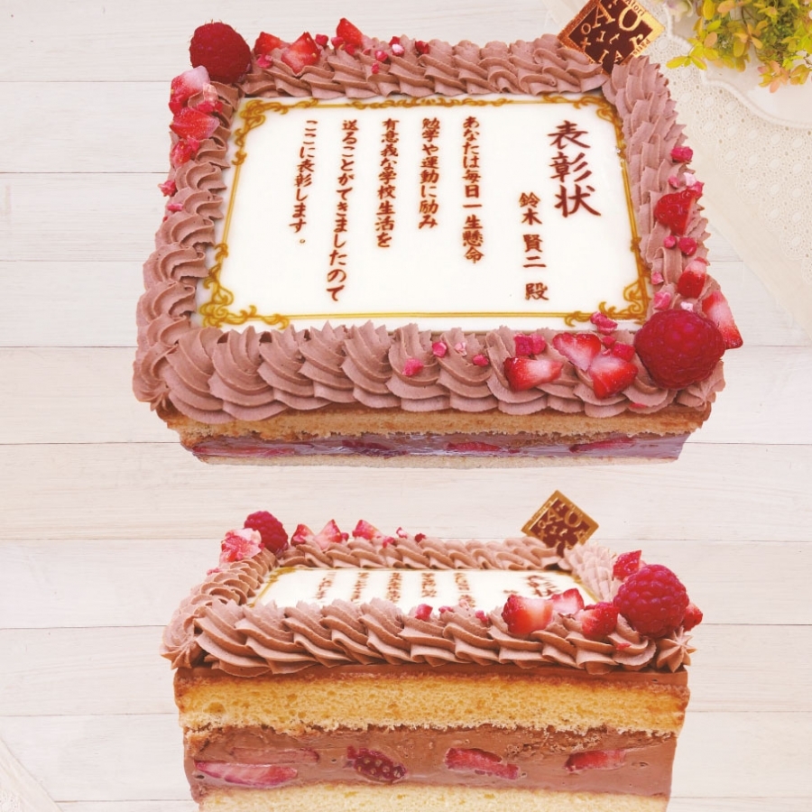 表彰状・メッセージカードのようなデコレーションケーキです。