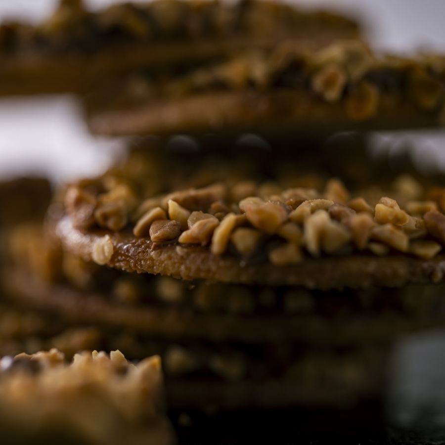 ミルクチョコレートとローストしたアーモンドをトッピング