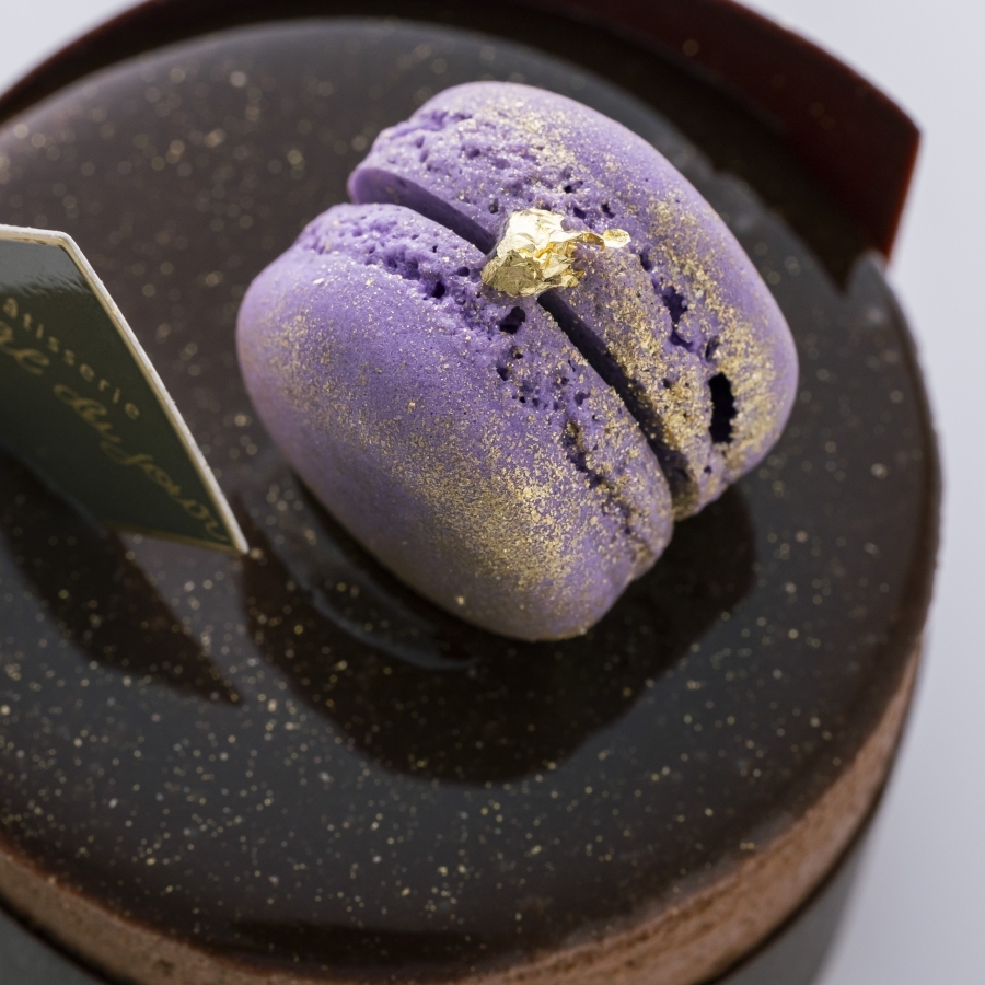 上にはブラックベリーのガナッシュをサンドしたプティマカロン