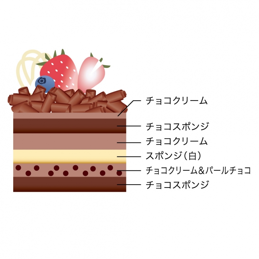 チョコスポンジとプレーンのスポンジで生チョコクリームをサンドしました。長く愛されている人気のチョコレートケーキです。