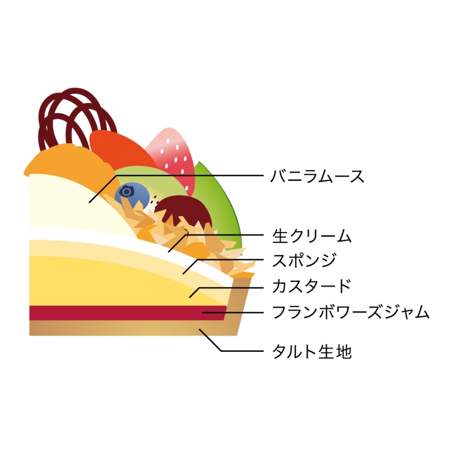 中はバニラムース・スポンジ・生クリーム・カスタード・ベリーのジャム