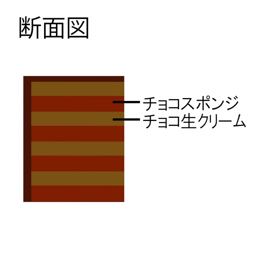 チョコ生クリームとチョコスポンジが層になったクラシカルなチョコレートケーキ