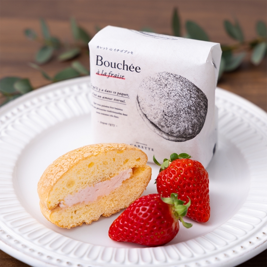 ・苺:甘酸っぱいフレッシュな苺果汁を使用したブッセ