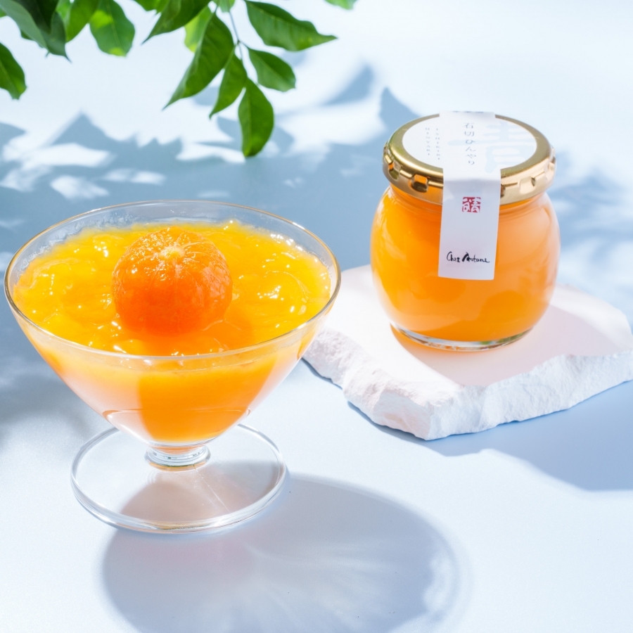 国産温州みかんの果汁とオレンジ・晩柑の果汁で仕上げたゼリー に、和歌山県産丸みかんをまるごと入れた贅沢なジュレ