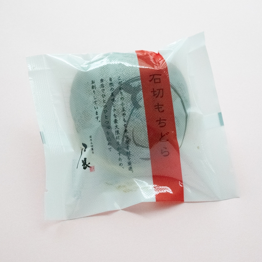 石切もちどらフレッシュバターがたっぷり入ったパンケーキの ようなふわふわの皮に、滋賀の雪姫羽二重糯(ゆきひめはぶたえもち)を使用した おもちと、北海道とやま農場さんの小豆(きたろまん) でおつくりしたあんをサンドしています。