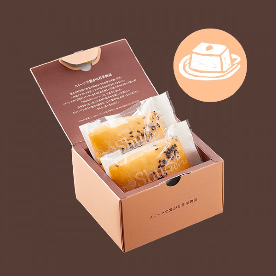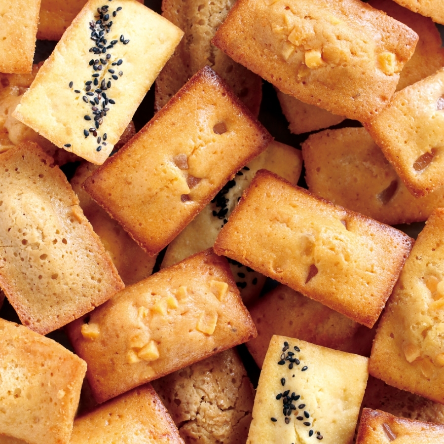 豆腐の優しい風味と香ばしい黒ゴマの風味がふんわりと口の中に広がります。甘さ控えめでさっぱりヘルシーなフィナンシェに仕上げました。