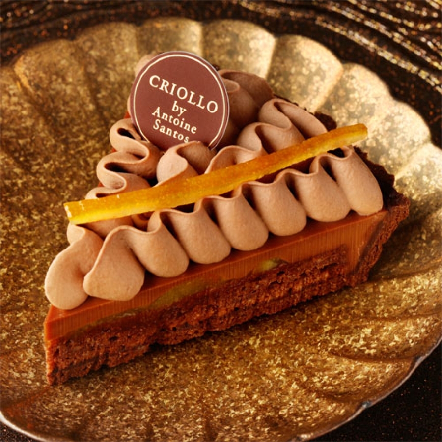 オレンジとチョコレートのマリアージュで大人気。滑らかな口解けが、心地よい2種類のチョコレートを合わせたチョコレートクリームとオレンジのジャムそして、クリオロのしっかり焼いたタルトの相性抜群です。