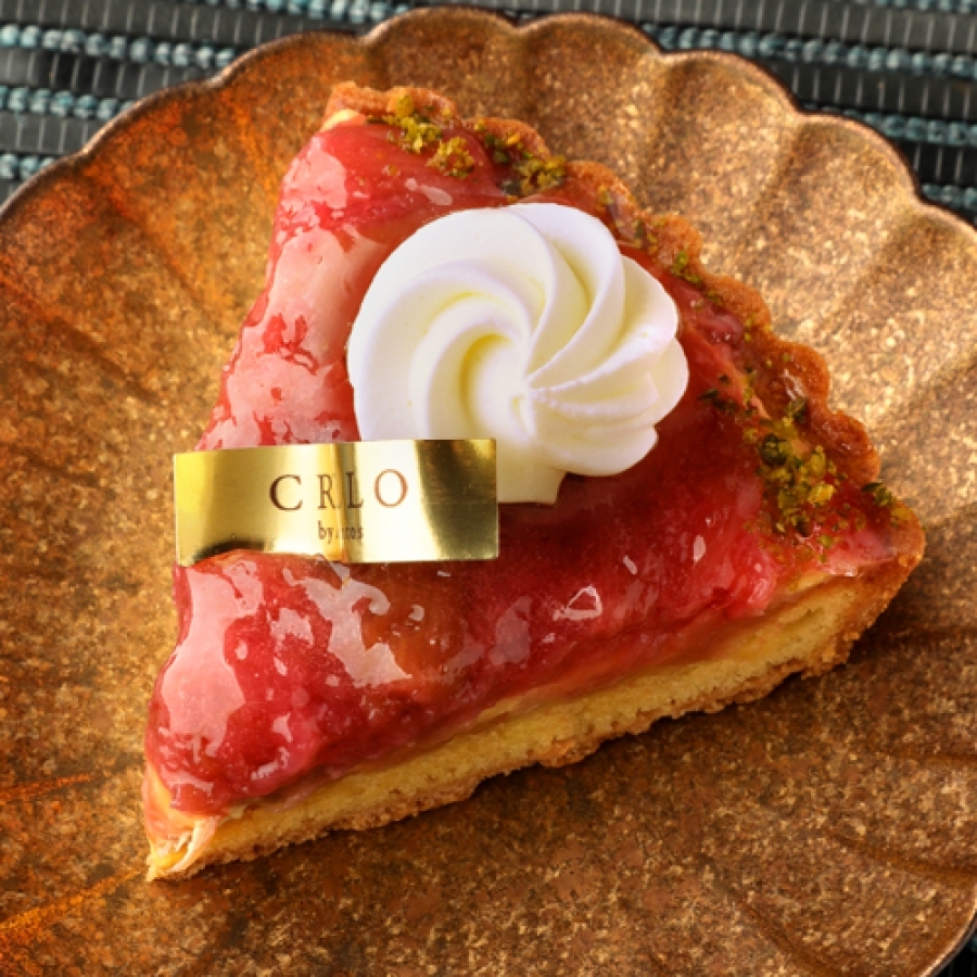 赤いリュバーブをコンポートにしてクリオロ自慢のタルト生地にのせました。