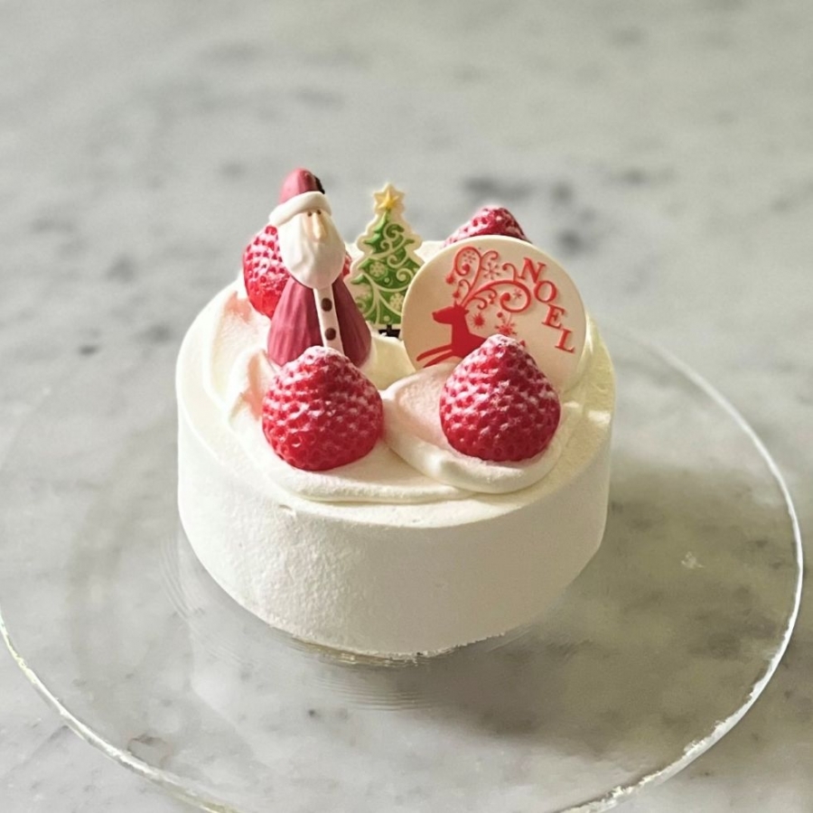 厚めに焼き上げたゼノワーズに生クリームと苺をサンドしたみんな大好き定番のクリスマスケーキです