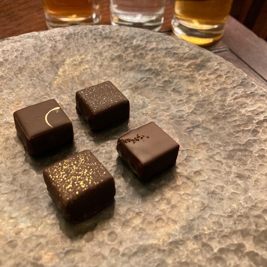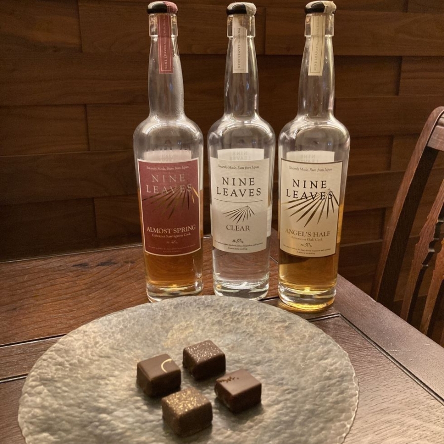 滋賀県産のラム酒「ナインリーヴズ」を使用した4粒のデギスタシオンショコラ