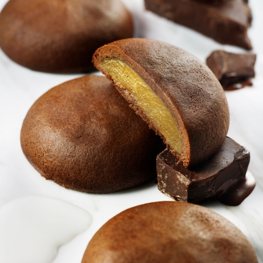 エクアドルの地で生まれた花のように芳しいフェアトレードのカカオが、長い旅を経て出会ったのは、まろやかで柔和な日本のミルクとバター。そこから生まれたのが、カカオの香り漂うバターリッチなビスキュイです。その褐色の薄生地の中に包まれたアイボリー色のフィリングの主役は、ホワイトチョコレートのミルク分を煮詰めてキャラメル化させた、ブロンド色のショコラ。それらをまるでガナッシュのように練り上げた、ねっとりとしたテクスチャーが魅力です。熱帯のフルーツ・カカオの華やぎあふれるパートと、ミルキーなガナッシュのようなフィリングの関係は、まるでひと粒のボンボンショコラのよう。その贅沢な風味は、子どもたちにとっても、大人たちにとっても、なぜか胸の高まりと、ときめく予感を覚える、未知なる牛乳菓。