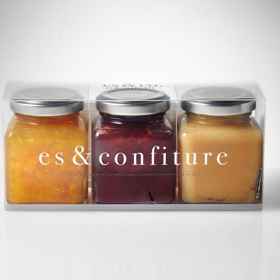 co.&m.ブティックの真っ白な空間に並ぶ何種類ものコンフィチュール。その美しさは、まるで色とりどりのパレットを眺めるかのようです。しかしそんな中から一つを決めるには、どれも魅力的で迷ってしまう、という方もきっといらっしゃるはず。 そこで、ぜひ今こそ味わっていただきたいコンフィチュール3種を、それぞれのテーマごとにシェフ小山がセレクトし、普段よりも少し小ぶりなサイズで詰め合わせたセットを作りました。幾つかの種類の料理を少しずつ味わうことのできる"デギュスタシオン・スタイル"は、最近のシェフ小山のお気に入り。そこから、「コンフィチュールのデギュスタシオン」という発想が生まれました。小さな瓶に詰まった彩り華やかなコンフィチュールが、3つ並んだ姿はとてもチャーミング。ちょっとしたお土産や贈り物にもぴったりです。