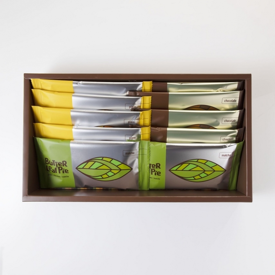 いかにも美味しそうな黄金色は、メイラード反応によるもの。“キャラメルの入口”のような絶妙な加減に焼き上げて。表と裏、どちらの面にも砂糖をコートすることで、バターが流れ出ずに旨みが凝縮。バター×小麦粉×砂糖、シンプルな素材でありながら今までとはまた違う、個性的なリーフパイが誕生しました。
