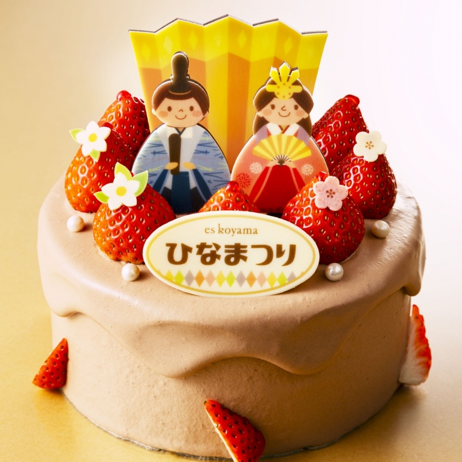 花の色に景色が彩られていく季節に訪れる「桃の節句」。お子さまの健康と幸せを願って、雛人形を飾り、菱餅を食べ、雛あられを食べて……と、いろいろな験担ぎの行事がありますが、今年は「エスコヤマのデコレーションケーキ」を囲んで、桃の節句のひなまつりをご家族の皆様でお過ごしいただくのはいかがでしょうか?エスコヤマが提案するのは、ケーキはふんわりしっとりと焼き上げたジェノワーズに、たっぷりの苺と、あと口さっぱりの生クリームをたっぷりとサンドした生クリームデコレーション。飾りには旬の苺と、エスコヤマが得意とするチョコレート細工でつくったお内裏様とお雛様もあしらいました。こちらのケーキを囲んで過ごされるひとときが、素敵な時間になればうれしく思います。