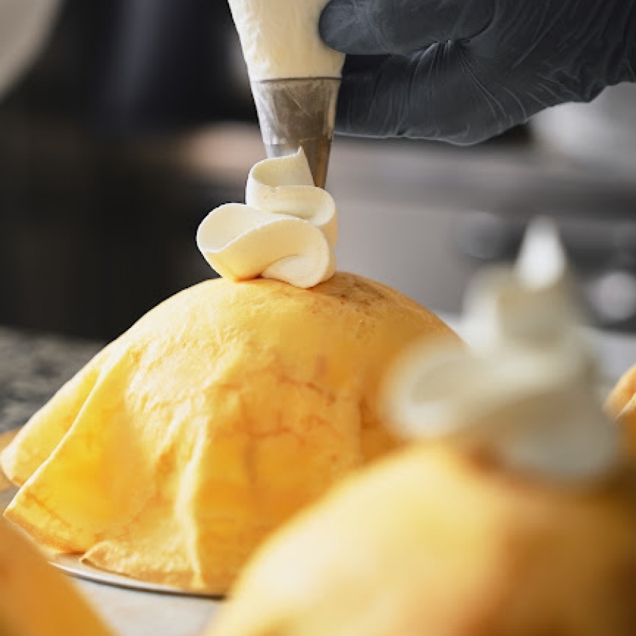 毎朝1枚ずつ焼き上げるもちもちのクレープ生地に