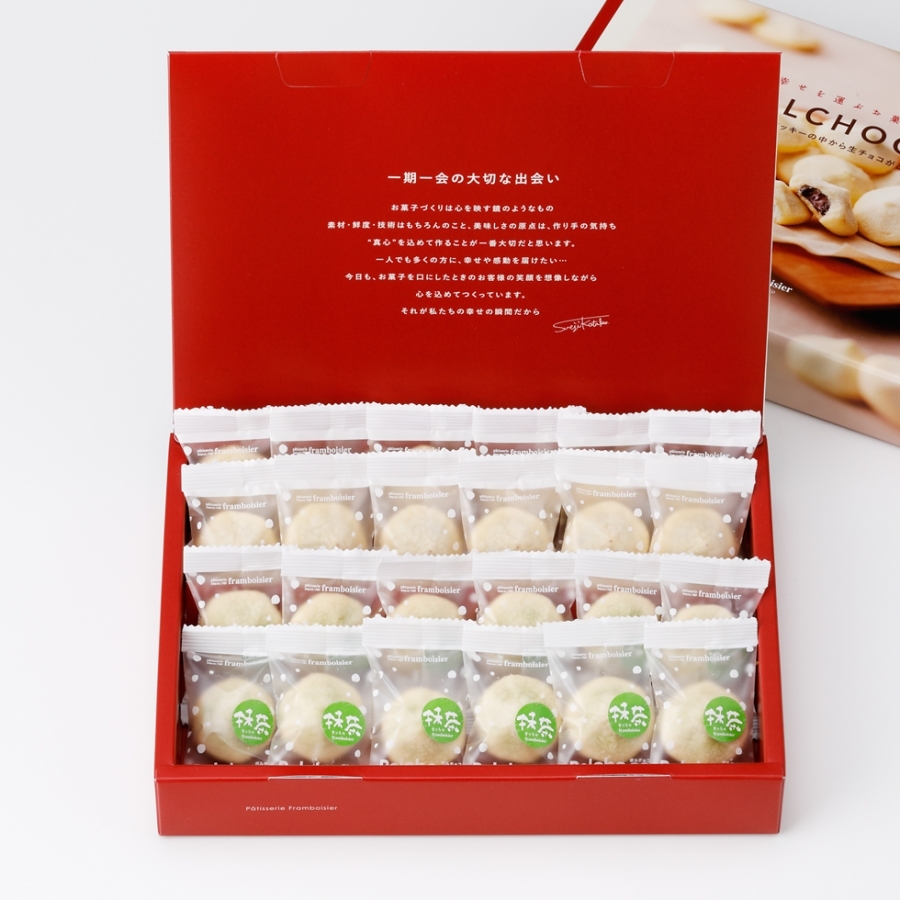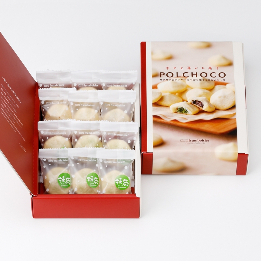 クッキーの中に、とろ〜りとろける生チョコを入れ、低温で丁寧に焼き上げました。中のチョコレートに熱が入りすぎない絶妙なタイミングで仕上げる「ポルチョコ」は、お子様はもちろん、大人の方にも楽しんでいただける逸品です。スイートと抹茶の2種類をご用意しております。