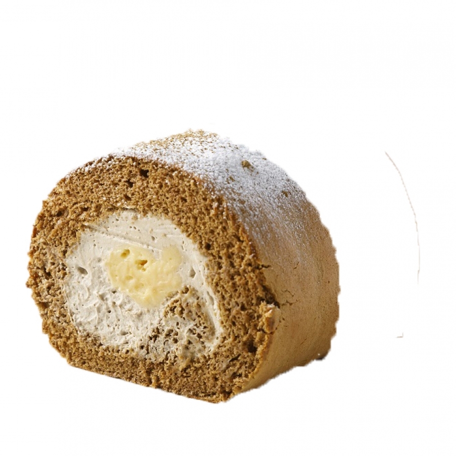 やさしい味わいのさつまいもクリームと濃厚な棒茶クリームを、ふわふわ棒茶風味の生地で巻きました。