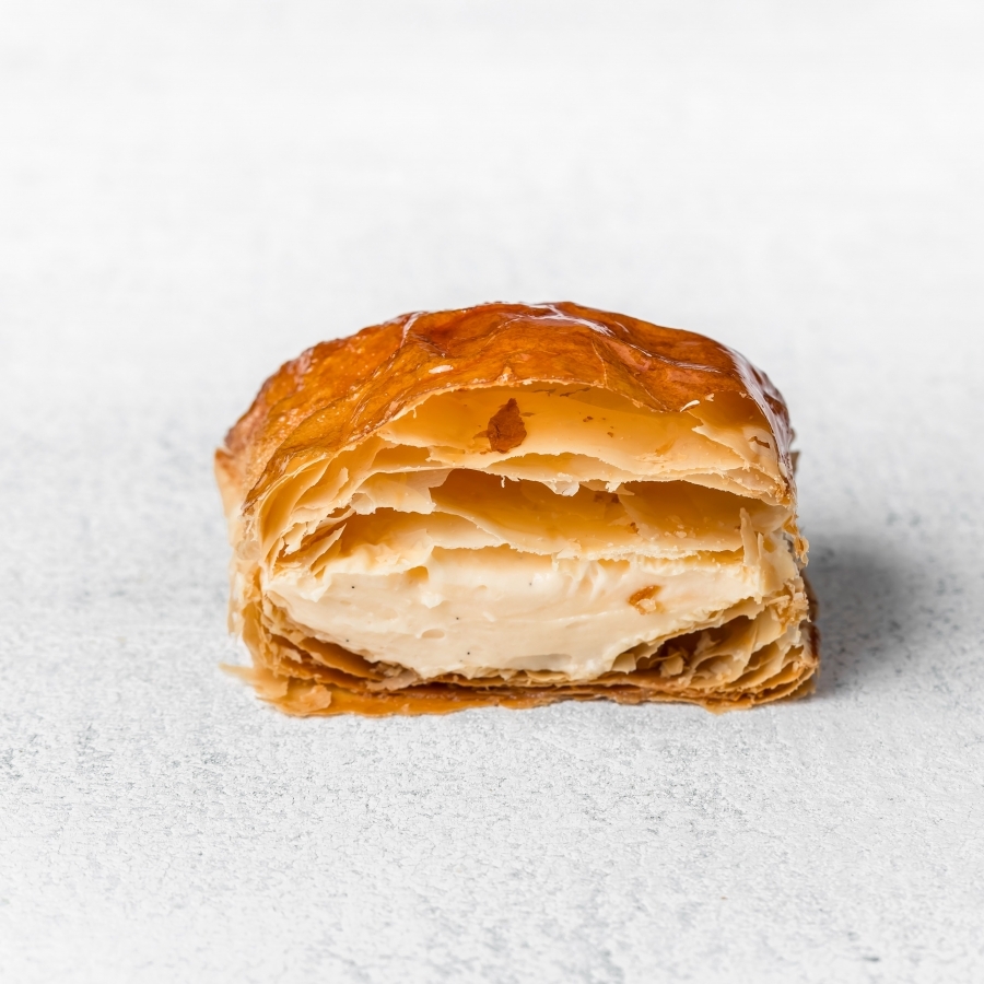 朝焼き立てのサクサクパイにカスタードクリームをしぼったシュークリームです。