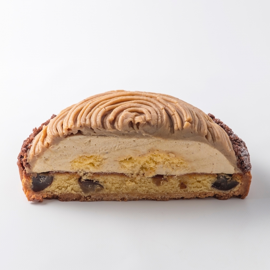 栗を埋め込んで焼き上げた香ばしいタルトに、2種類の栗を使ったムースと和栗モンブランクリームをたっぷりと絞りました。