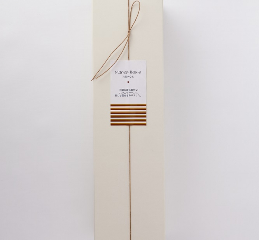 ふんわりしっとりのしあわせ食感をみなさまに。、栗の風味豊かなバウムクーヘンに、栗の甘露煮を飾りました。