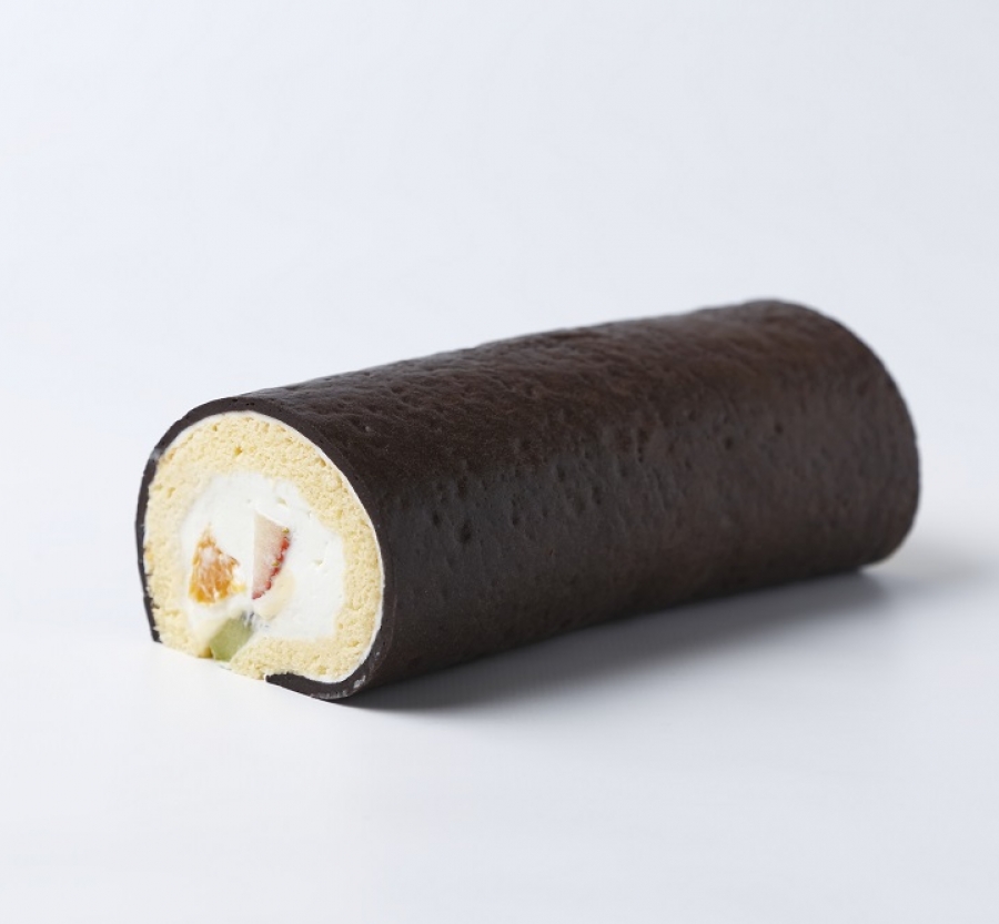 中には口どけの良い生クリームと「いちご」「バナナ」「キウイ」「オレンジ」の4種類のフルーツをふんだんに入れて巻き上げました。
