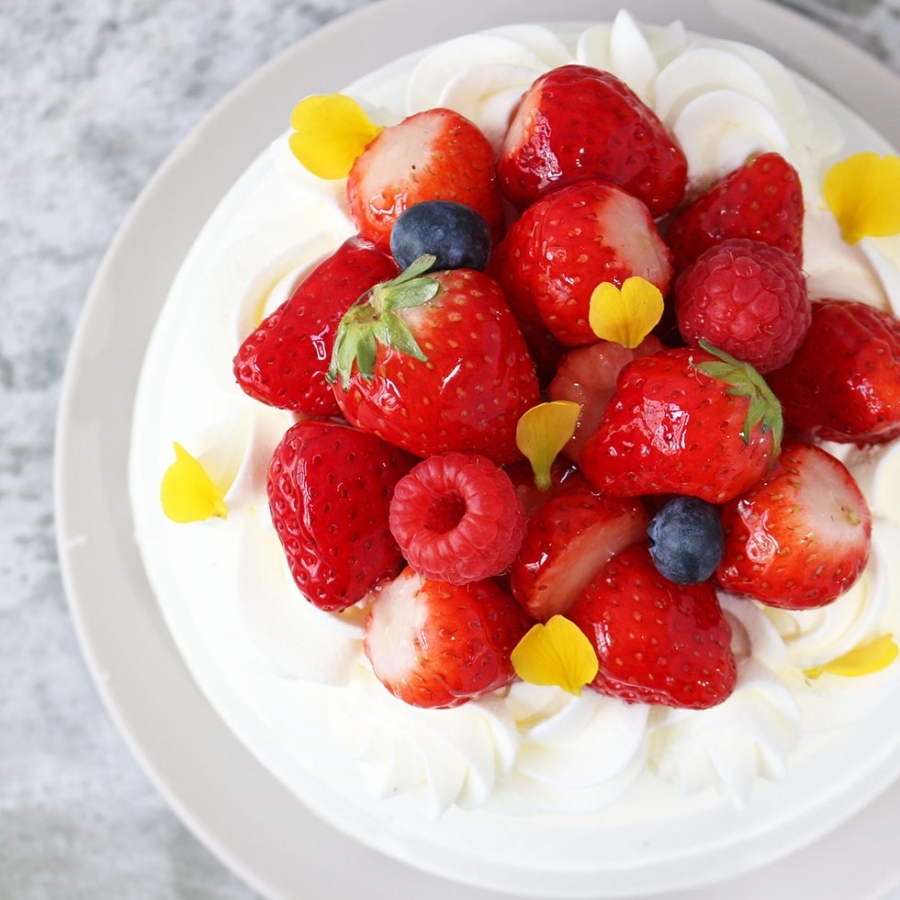 ふわふわのスポンジと甘さ控えめな生クリームが自慢のショートケーキにいちごをたくさんのせた特別感のある