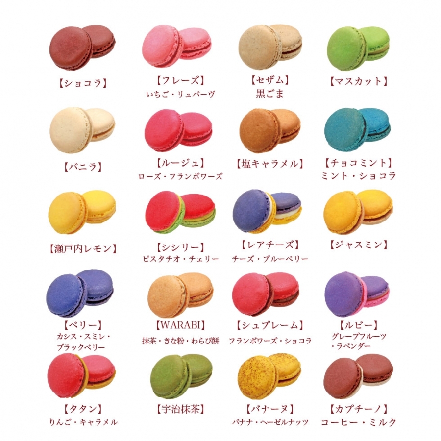 さっくり、しっとりしたマカロン生地にチョコレートのようになめらかなクリームをサンドした当店自慢の看板商品です。種類豊富なフレーバーの中から詰め合わせしました。
