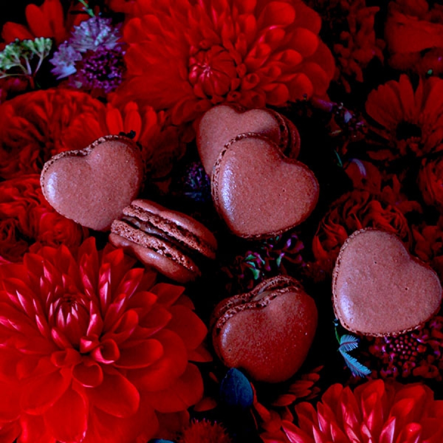 ・ハートマカロン赤ーフランボワーズ・ショコラ