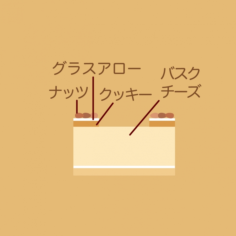 ナッツをふんだんに飾ったクッキーを乗せた濃厚でとろけるチーズケーキ。生クリーム苦手な方はこちら