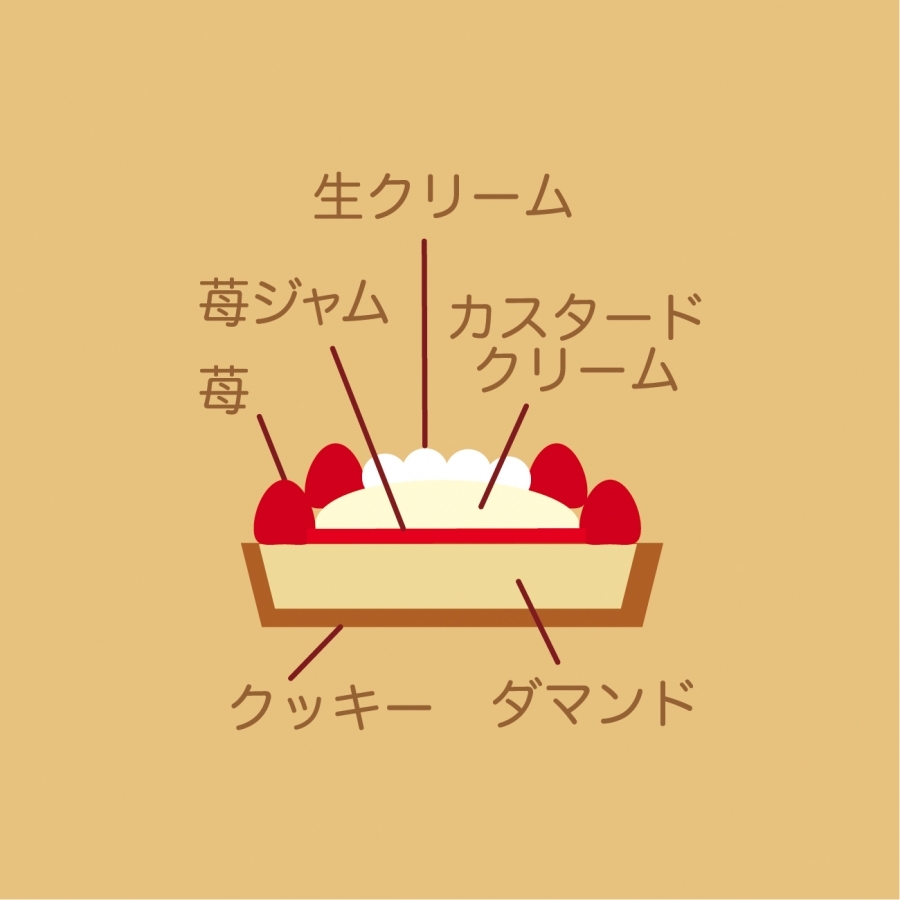 たっぷりの苺、濃厚カスタードクリーム、フルタ自慢のタルト生地にお花のクッキーを添えて