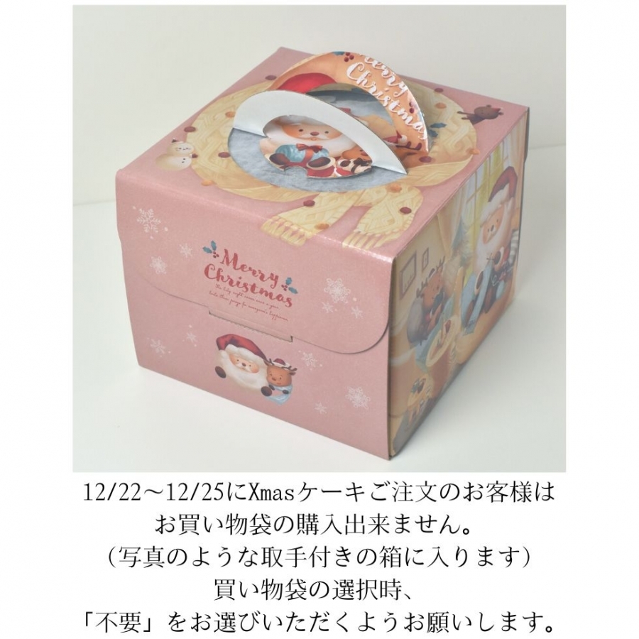 12/21〜12/25にXmasケーキご注文のお客様はお買い物袋の購入出来ません。(取手付きの箱に入ります)