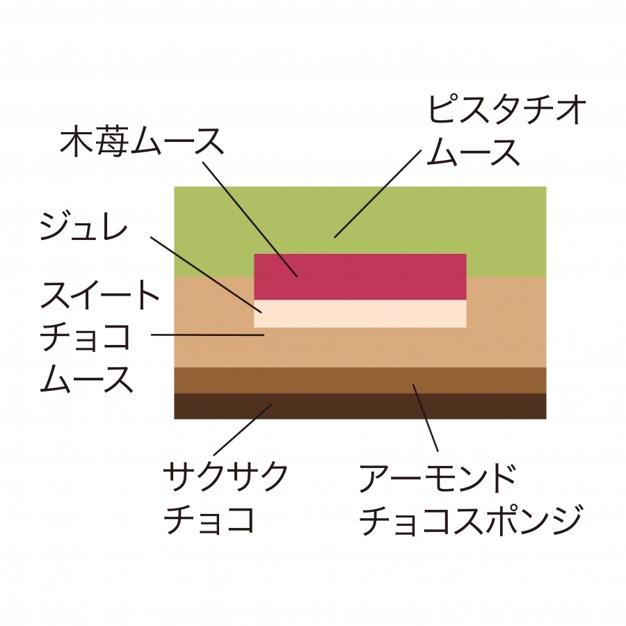 中に木苺ムースと木苺ジュレ、下はサクサクチョコ